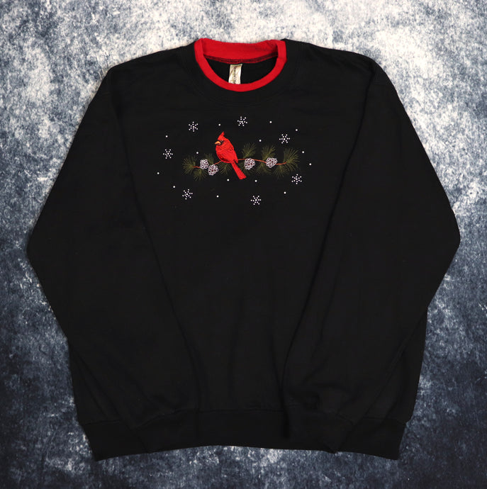 Vintage Black Cardinal Bird Sweatshirt | Medium