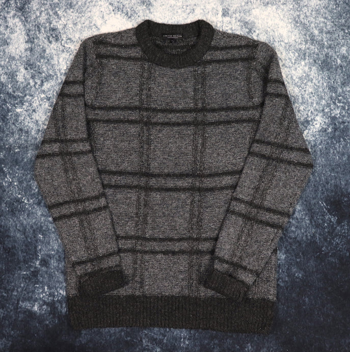 Vintage Dark Grey & Navy Striped V Neck Jumper | Medium