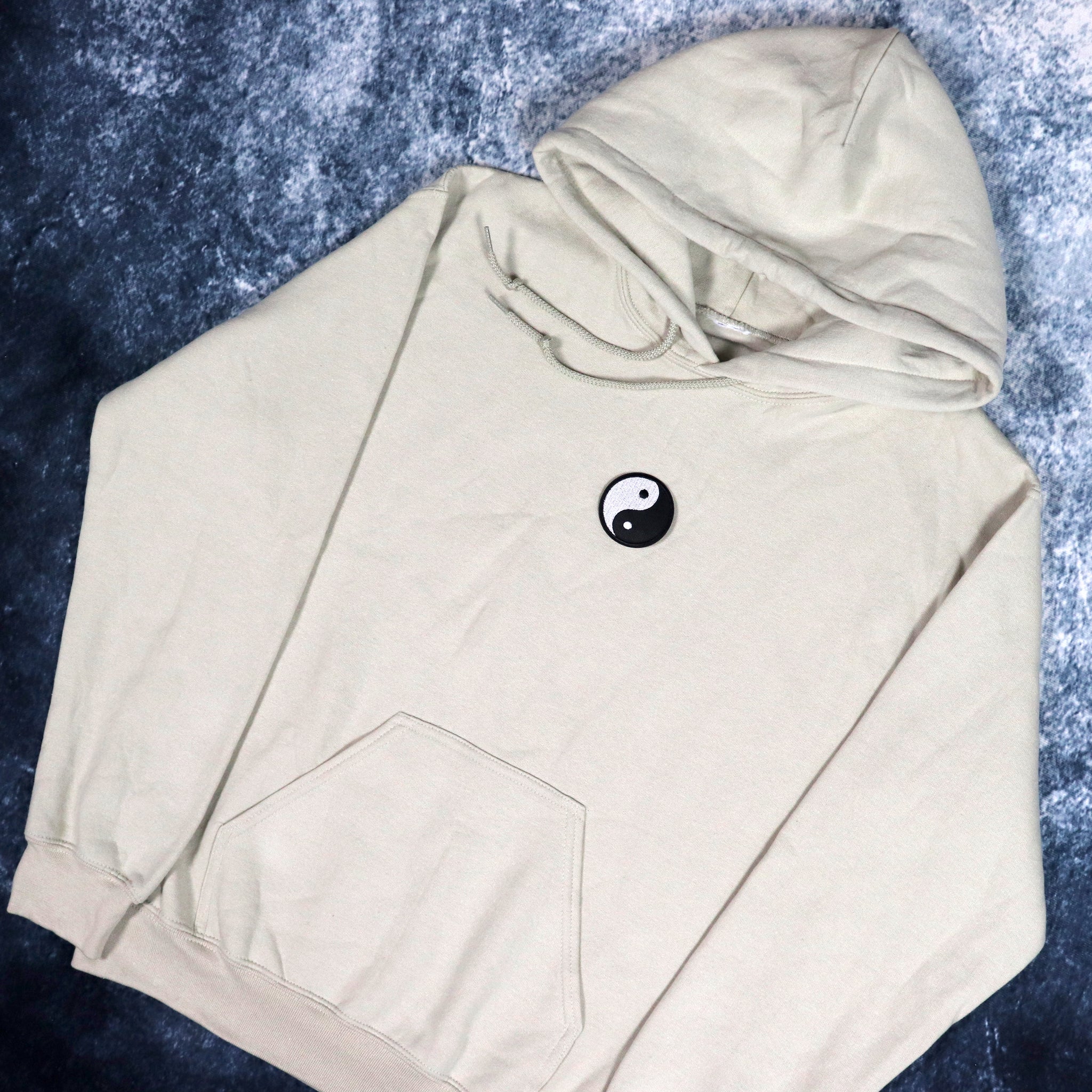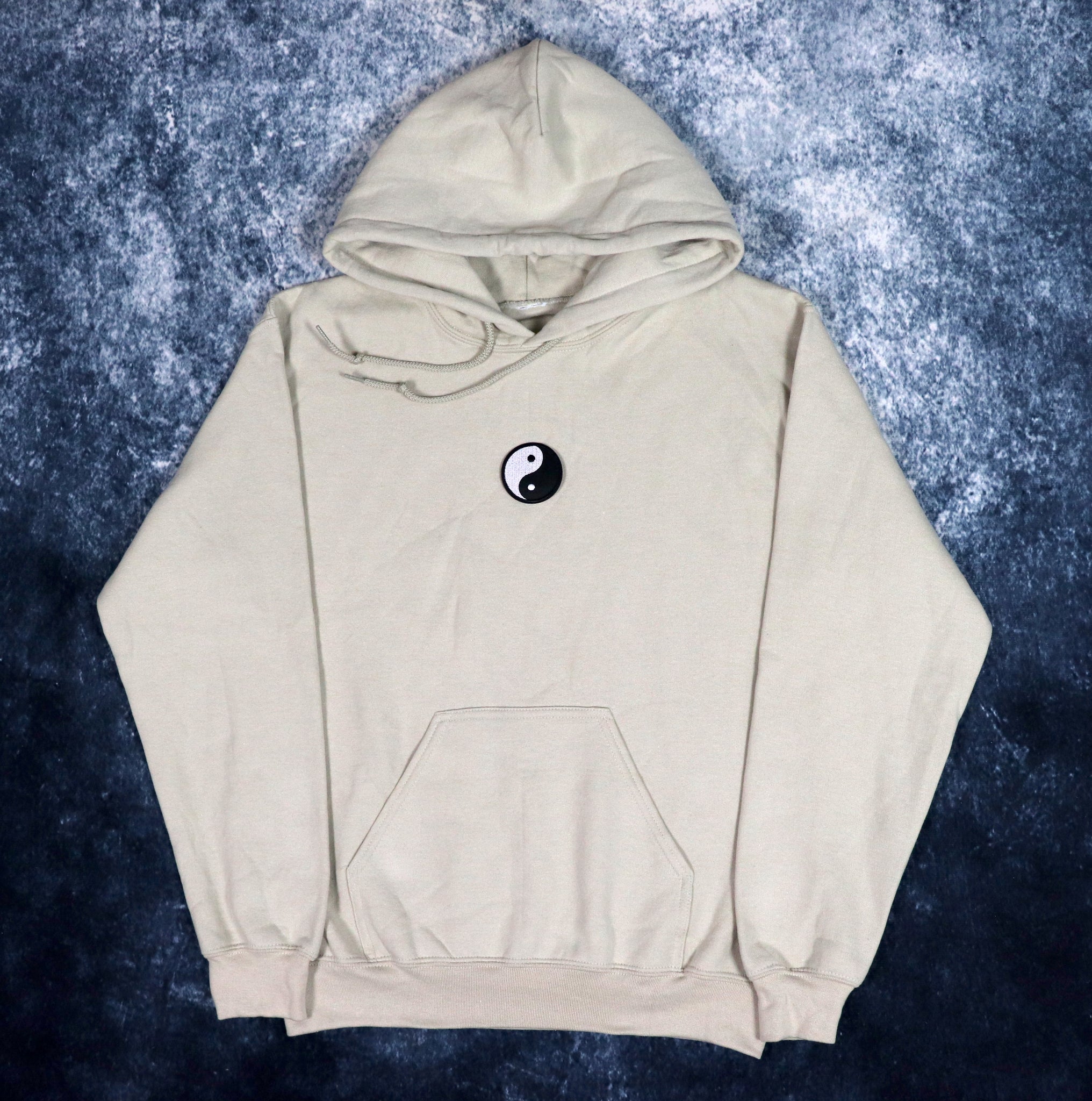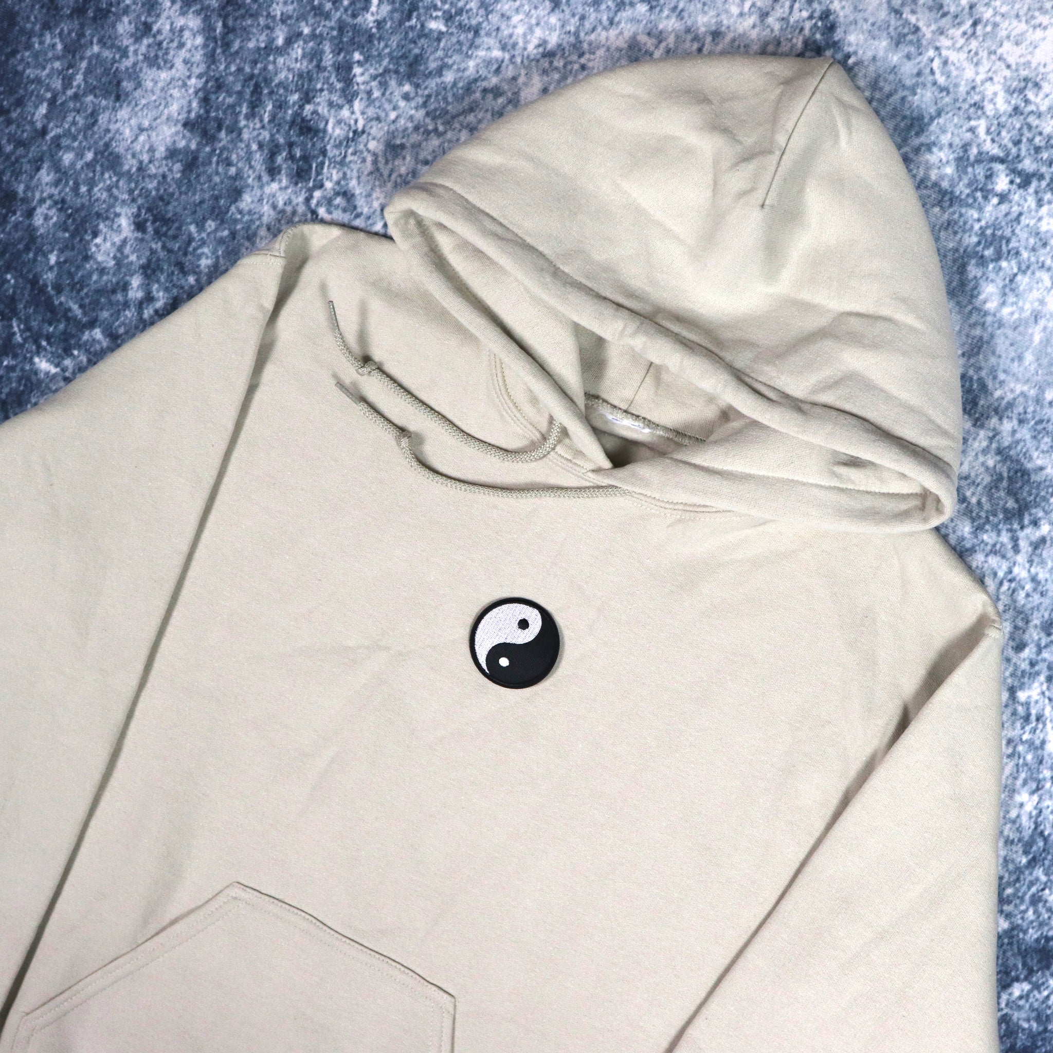 Details: Beige heavy blend hoodie with a small embroidered yin yang patch on the front. This hooded sweatshirt has been manufactured to a high standard using air-jet spun yarn for a soft feel. Made from pre-shrunk 50% cotton, 50% polyester.