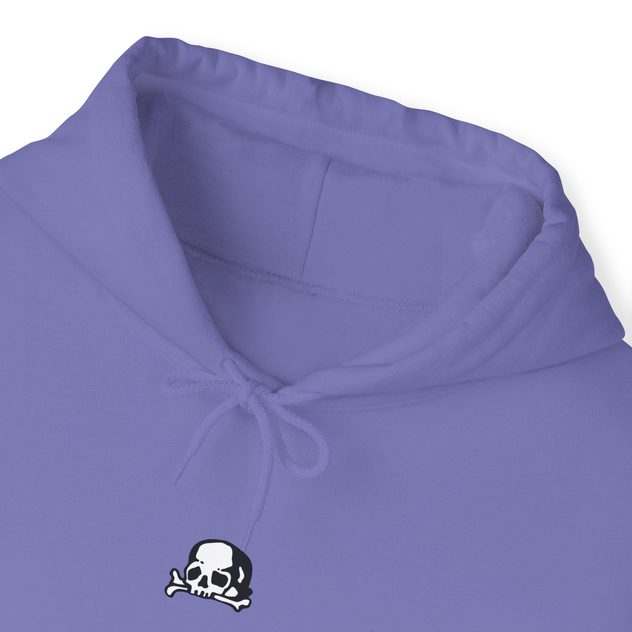 Details: Violet heavy blend hoodie with skull print on the front. This hooded sweatshirt has been manufactured to a high standard using air-jet spun yarn for a soft feel. Made from pre-shrunk 50% cotton, 50% polyester.
