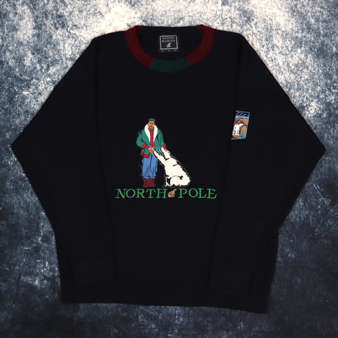 Vintage 90s Navy North Pole Polar Bear Jumper | Small